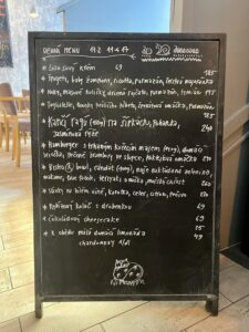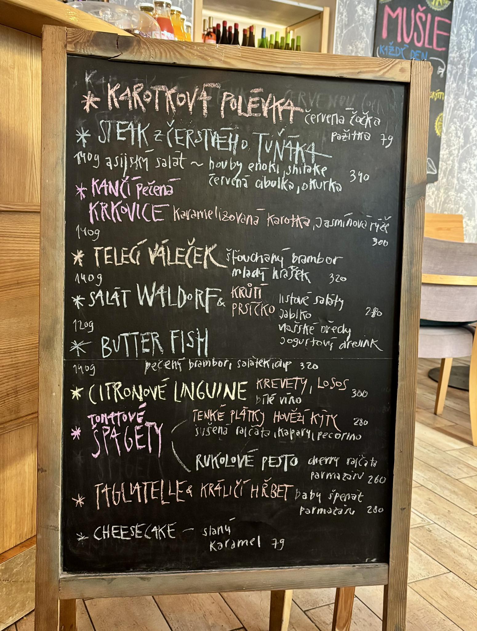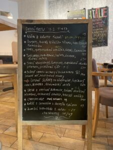 Denně měníme obědové i večerní menu s ohledem na sezónu. Naší specialitou jsou čerstvé mušle a naše vína, která si dovážíme!